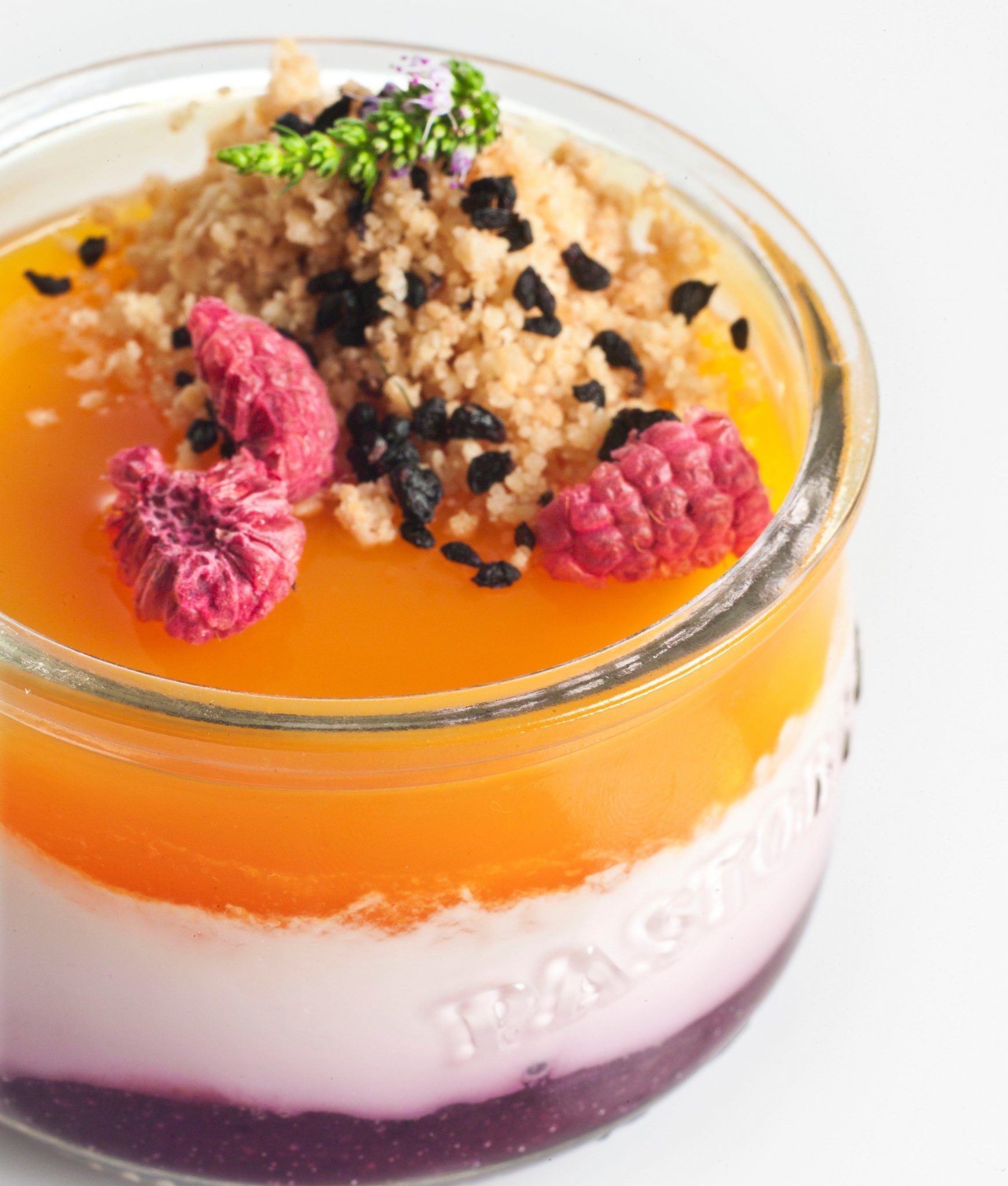 Te enseñamos a dar un toque gourmet a tus caprichos de yogur de mango con una receta a base de streusel de almendra.